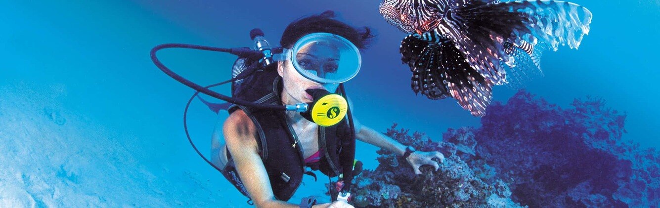 The first dive takes place at Aquarium Bay, a spectacular dive destination known for its calm, clear waters and diverse marine species. As you descend, you’ll be mesmerized by the underwater world, where schools of colorful fish, coral formations, and other marine creatures create an enchanting experience. The shallow waters make this an ideal introduction to scuba diving, offering excellent visibility and a serene environment.